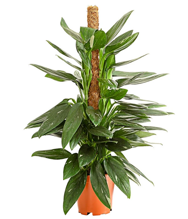 Der Baumfreund ‘Cobra‘ erwartet keine aufwändigen Pflegemaßnahmen von Ihnen. Geben Sie ihm einen hellen Standort bei normalen Raumtemperaturen bis 24°C und ohne direkte Sonneneinstrahlung, zum Beispiel an einem Ostfenster. Gießen Sie den Philodendron regelmäßig, lassen aber zwischen den Intervallen die oberste Erdschicht trocknen. Über 14-tägige Düngergaben freut sich Ihr Philodendron vom zeitigen Frühjahr bis zum Ende des Sommers. Noch ein Tipp: Diese Pflanze hat zwar bereits eine Rankhilfe, die aber bei ihrer Wuchsfreude langfristig nicht ausreichen wird. Ersetzen Sie sie deshalb am besten bald durch einen mit Kokosfaser, Sisal oder Jute umwickelten Stab mit einer Länge von ca. 2 m. Feuchten Sie die Oberfläche der Kletterhilfe regelmäßig an, dann kann sich der Baumfreund ‘Cobra‘ selbstständig daran festhalten.