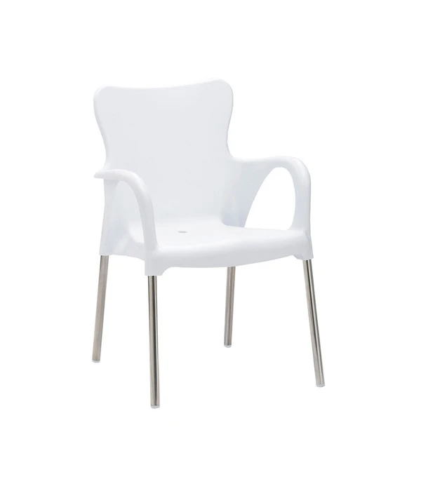 So extravagant das Design dieses Stapelsessels auch ist, so gut harmoniert er mit vielen modernen Esstischen. Am besten passen natürlich Gartentische, die ebenfalls ein Gestell aus silberfarben glänzendem Metall und eine Platte aus einer weißen Kunststoff-Oberfläche haben. Je nachdem, welche Stuhlfarbe Sie wählen, können Sie aber auch einen Tisch mit einer dunklen, vielleicht anthrazitfarbenen Tischplatte wählen. Auch ein Tisch mit einer hellgrauen Platte wirkt sehr elegant zu dem Alu-Stapelsessel Maui.