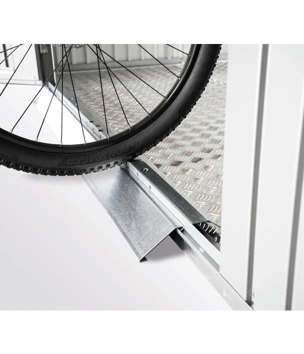 Sie besitzen ein Gerätehaus von Biohort mit Doppeltür und benötigen eine Rampe, um Ihre Gartengeräte, Fahrräder o.Ä. problemlos in das Gerätehaus befördern zu können? Dann ist die Bodenwellen-Rampe die richtige Wahl. Sie passt perfekt zu den Gerätehäusern Europa und Avantgarde(ab Größe L, mit 2. Türflügel) – einfach bei Bedarf einhängen und nach Nutzung wieder abhängen. Die Rampe ist maximal belastbar mit 200 kg, sie deckt gleichermaßen Außen- und Innenseite ab.