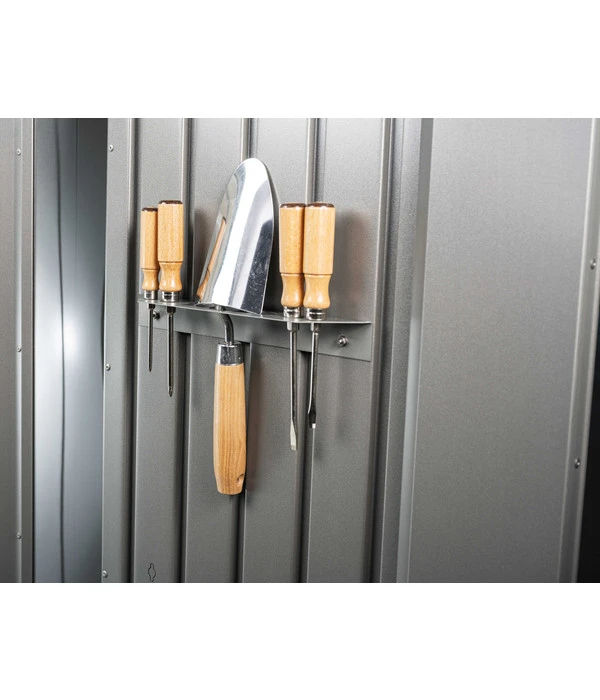 Sie sind ein begnadeter Gärtner und Handwerker und Ordnung zählt zu Ihren Tugenden? Dann ist der robuste Werkzeughalter Neo der Marke Biohort für Ihr Gerätehaus ein echtes Must-have! Die Vorrichtung verfügt für jedes Arbeitsgerät über eine exakt passende Halterung, sodass Sie mit dem Zubehörteil dafür sorgen, dass Ihre verschiedenen Werkzeuge immer besonders ordentlich und übersichtlich aufgeräumt sind. Damit schaffen Sie mit dem Werkzeughalter Neo von Biohort nicht nur maximalen Stauraum auf minimaler Fläche, sondern Sie haben jedes Gerät stets griffbereit. Bei der richtigen Einsortierung der Werkzeuge, wie Kreuz- oder Schlitzschraubendreher, sind Ihrer individuellen Kreativität und Ihren persönlichen Vorlieben keine Grenzen gesetzt.