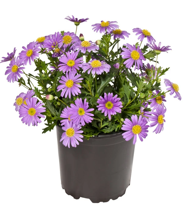 Das blaue Gänseblümchen gehört zur Familie der Korbblütler und trägt seinen Namen aufgrund der Ähnlichkeit zu dem herkömmlichen Gänseblümchen, das wild auf unseren Rasen wächst. Zahlreiche blaue, margeritenähnliche Blüten wachsen einzeln an langen Stielen und blühen über Monate hinweg. Durch die aufrecht buschige, aber leicht überhängende Wuchsform eignet sich die Brachyscome ideal für Kübel oder Balkonkästen.