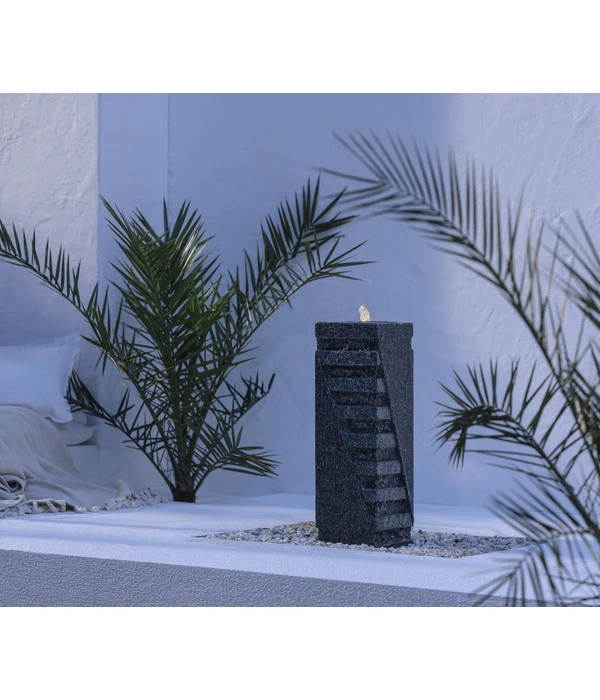 Spannungsreiches Kunstobjekt und Wasserspiel in einem: der Dehner Granit-Gartenbrunnen Riva, ca. H56 cm