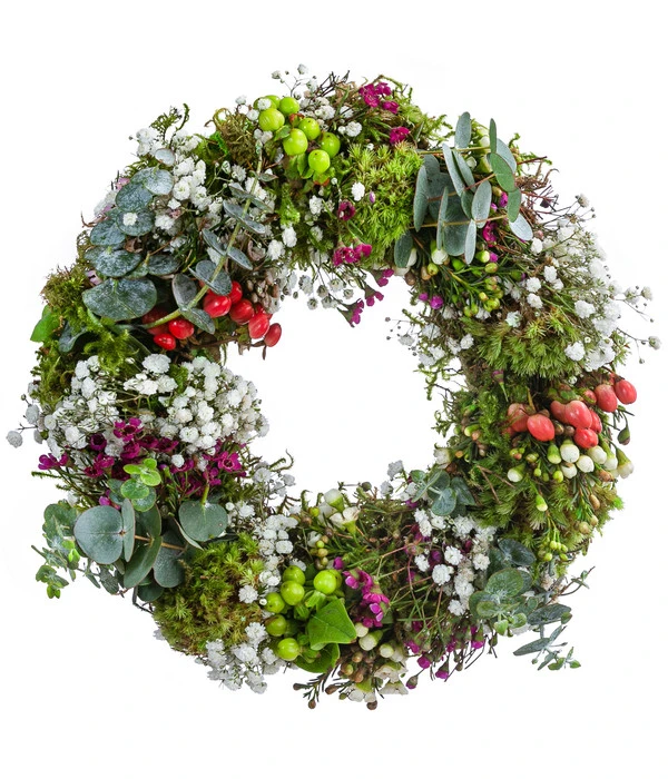 Der fröhliche Kranz Lucie von Dehner besticht nicht nur mit seiner natürlichen Optik, er lässt sich auch äußerst vielfältig einsetzen: Sie können ihn sowohl an der Wohnungstüre aufhängen als auch dekorativ am Kaffeetisch platzieren. Optisch überzeugt der Kranz mit seinen farblich aufeinander abgestimmten Elementen aus Mutter Natur: Moos, Blüten, Eukalyptusblätter sowie weißes Schleierkraut versprühen ein romantisches Flair. Trockenblumen sowie rote Beeren des Johanniskrauts sorgen für frische Farbtupfer und machen den Kranz zu einem echten Hingucker. Bestellen auch Sie sich jetzt den charmanten Kranz Lucie von Dehner und lassen Sie den Frühling in Ihrem Heim und Herzen einziehen!