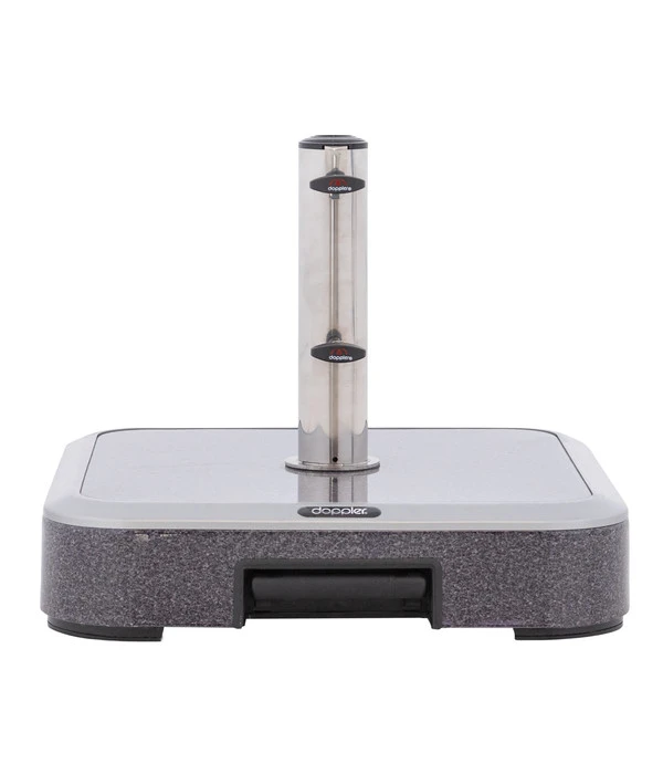 Der Doppler Schirmständer Trolley begeistert nicht nur durch eine formschöne Optik, sondern auch durch eine hohe Funktionalität. Mit wenigen Handgriffen haben Sie den Schirm in die Öffnung gesteckt und ihn mit Schrauben sicher fixiert. Wenn die Sonne wandert oder Sie gerne woanders Schatten hätten, lässt sich der Ständer dank der leichtgängigen Rollen und des ausziehbaren Griffs ganz einfach versetzen. Selbstverständlich bleibt der Schirmständer Trolley von Doppler aber ansonsten sicher an seinem Platz. Bestellen Sie jetzt dieses praktische Accessoire für Ihren Außenbereich und der Sommer kann kommen.