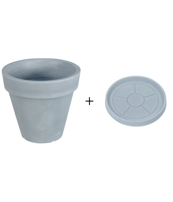 Dank des rotationsgeformten Kunstoffs ist der konische Topf Pegasus von Farmet New nicht nur besonders pflegeleicht, er überzeugt auch durch Langlebigkeit und Robustheit. Er kann problemlos das ganze Jahr über im Freien eingesetzt werden, da er allen Witterungseinflüssen standhält. Frost und Schnee können ihm genau so wenig anhaben wie hohe Temperaturen und Sonneneinstrahlung. Darüber hinaus tun Sie etwas für unsere Umwelt, denn der Topf Pegasus besteht zu 100 Prozent aus recyceltem Material. Selbstverständlich ist er auch für Innenräume und empfindliche Terrassendielen geeignet, dann nutzen Sie den praktischerweise im Set enthaltenen Untersetzer, um Schäden durch auslaufendes Wasser zu vermeiden. Schaffen Sie mit dem Farmet New Kunststoff-Topf Pegasus inkl. Untersetzer den perfekten Rahmen für Ihre geliebten Blumen.
