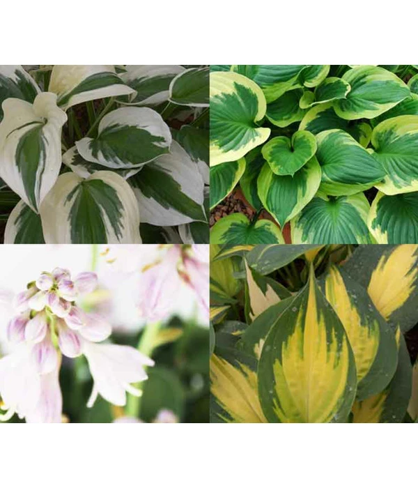Sie lieben es Ihre Beete und Rabatten mit neuen Akzenten zu versehen oder einfach die vorhandenen Lücken in Ihren Pflanzungen mit neuen Highlights zu füllen. Eine Vorliebe, die Sie mit diesem Set aus 4 verschiedenen Funkien voll ausleben können. Denn, wenn diese zauberhaften Blattschmuckstauden ein Blatt nach dem anderen wachsen lassen, wird Ihre Freude groß sein. Schließlich gastieren dann so berühmte Vertreter wie ‚Forbidden Fruit‘ und ‚Patriot‘ zwischen Ihren Stauden und zeigen sich ‚Blue Mouse Ears‘ und ‚Twilight‘ von ihrer schönsten Seite. Und das bedeutet: atemberaubend attraktive Blätter in unterschiedlichen Grüntönen und aufregenden Zeichnungen in Gelb oder Weiß. Und obwohl die Blüte hier nicht die Hauptrolle spielt, werden Sie auch deren Anmut genießen, wenn sie sich in der Zeit von Juni bis Juli präsentieren. Folgen Sie also Ihrer Eingebung und schmücken Sie Ihre Beete, Rabatten und Kübel mit diesem Set aus 4 verschiedenen Funkien!