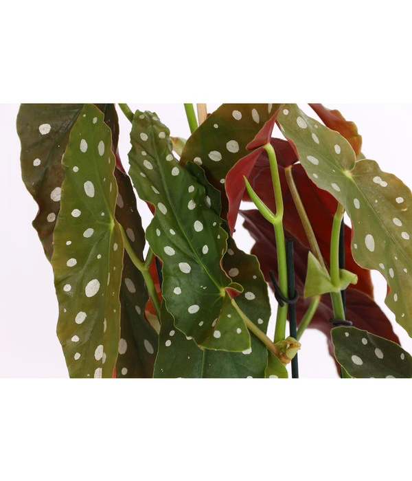 Wenn die Bezeichnung Blattschmuckpflanze perfekt auf eine Pflanze zutrifft, dann sicher auf die Forellenbegonie, die auch unter dem Namen Polka-Dot Begonie bekannt ist. Denn ganz gleich, ob die langgezogene Herzform ihrer Blätter Sie begeistert, oder ob Sie Ihren Blick nicht mehr von den silbrig reflektierenden Punkten wenden können, die kontrastreich auf der dunkelgrünen Blattoberseite prangen – diese aufrecht wachsende, leicht überhängende Pflanze ist in jeder Hinsicht ein Schmuckstück! Einen herrlichen Kontrast zur schmucken Blattoberseite bilden zudem ihre Blattunterseiten, die in einem intensiven Rotton erstrahlen und so noch mehr Spannung ins Spiel bringen. Schmückt sich die Zimmerpflanze dann auch noch mit ihren kunstvoll geformten, korallenroten Blüten, kann sich ihrer Anziehungskraft wirklich niemand mehr entziehen. Gönnen Sie sich deshalb schon bald diese brasilianische Rarität und genießen die Ausstrahlung Ihrer Polka-Dot Begonie jeden Tag aufs Neue!