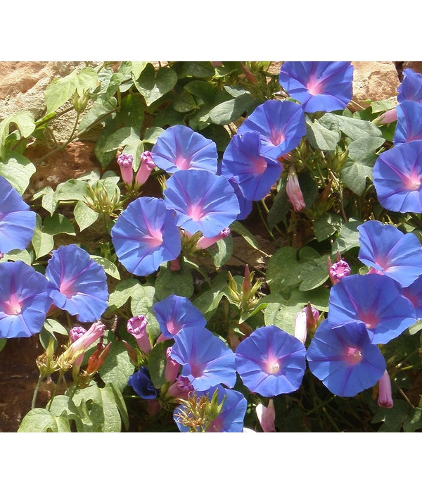 Der fleißige Kletterer erobert an Spalieren Hauswände und hohe Zäune im Nu und bietet daher einen einjährigen, reich blühenden Sichtschutz. Eine Kletterhilfe, an der die Pflanzen Halt finden, ist jedoch frühzeitig anzubringen, damit die Prunkwinden ihre Wuchslänge voll zur Geltung bringen können. Unterstützen Sie die Pflanze mit einem Rankgitter oder gespannten Schnüren, an denen die Ipomoea ihre Triebspitzen umwickeln kann. Selbst kahle Mauern oder langweilige Obelisken, werden mit dieser Pflanze zum echten Blickfang. Eine Kultur im Kübel oder Balkonkasten ist mit der Ipomoea ebenfalls möglich.