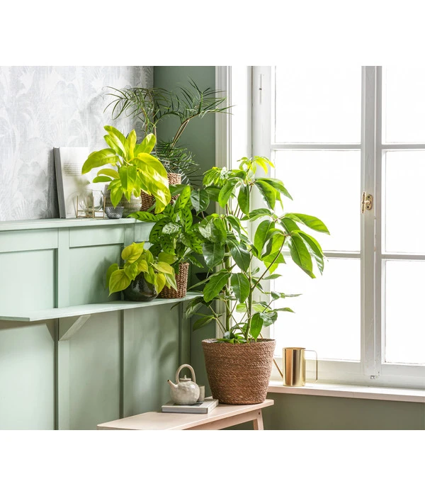 Um Ihre Queensland-Strahlenaralie ‚Amate‘ wirklich in ihrer ganzen Schönheit erleben zu können bietet sich eine Solitärstellung an. So kann sie sich rundherum optimal entwickeln. Und gleichzeitig genießen Sie eine weitere positive Eigenschaft Ihrer Blattschmuckpflanze: Sie filtert Schadstoffe wie Formaldehyd aus der Raumluft und sorgt so für ein gesünderes Raumklima.