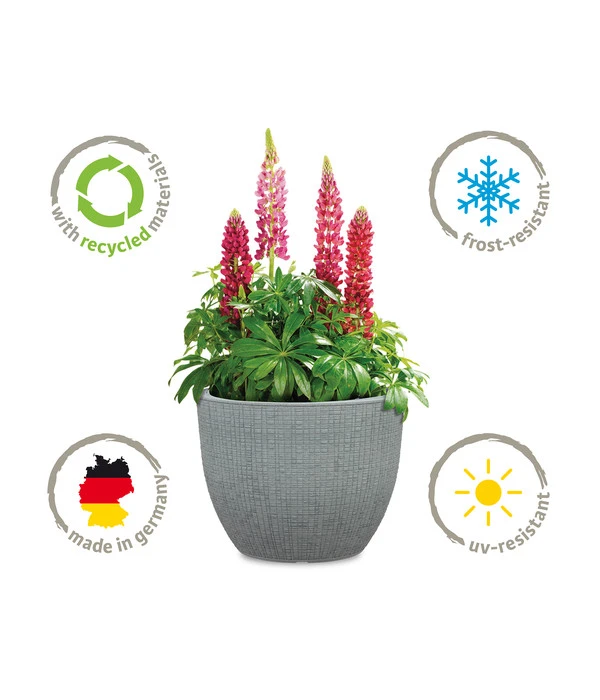 Der Topf Barceo aus dem Hause Scheurich, der in Deutschland produziert wurde, besteht aus hochwertigem Kunststoff, wobei recyceltes Material zum Einsatz kommt. So erweist sich das Modell nicht nur als langlebig und robust, sondern auch als ausgesprochen nachhaltig. Darüber hinaus erlaubt das geringe Eigengewicht den leichten Transport des Topfes von A nach B. Nicht zuletzt ist das Modell Barceo frostsicher und UV-beständig. Im Boden des Pflanztopfes ist ein Loch integriert, damit überschüssiges Gießwasser abfließen kann. Für die Nutzung im Innenbereich verschließen Sie das Loch einfach mit dem passenden Stopfen. Bestellen Sie den praktischen und schicken Blumentopf Barceo gleich jetzt!