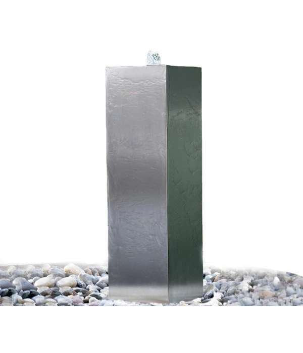 ‘Weniger ist mehr‘ – diese Designer-Regel wurde diesem Brunnen quasi auf den Leib geschrieben. Denn selten findet man ein Wasserspiel, das mit so wenig Formen und Materialien auskommt wie der Seliger Edelstahl-Gartenbrunnen Tower. Seine majestätische Höhe macht ihn zu einer beeindruckenden Erscheinung. Der kantige Korpus besteht komplett aus hochwertigem Edelstahl, dem eine mattierte Oberfläche den besonders edlen Look verleiht. Für die Krönung aber sorgt das Element Wasser, das hier oben aus einem Quellstein strömt und dann an den Seiten herabfließt. Ein immerwährender Kreislauf, der eine faszinierend beruhigende Wirkung ausstrahlt. Lassen Sie mit dem Seliger Edelstahl-Gartenbrunnen Tower ein Deko-Objekt Einzug halten, das Ihrem Garten-Ambiente eine besondere Ausstrahlung verleiht!