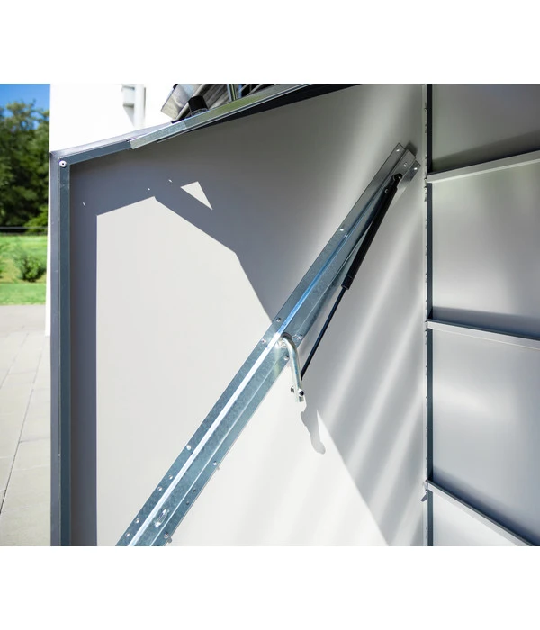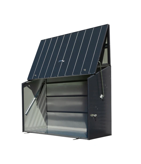 Fahrräder, Gartenliege und -stühle sowie unterschiedliche Geräte müssen irgendwo ihren Platz finden und zum Schutz vor Wind und Wetter sicher verstaut werden. Holen Sie sich hierfür die funktionale Trimetals Fahrradbox Sesame nach Hause. Diese ist dank der Fertigung aus hochwertigem, verzinktem Stahl besonders witterungsbeständig. Die praktische Box punktet mit einem einzigartigen, schlichten Design und einer durchdachten Konstruktion, wodurch diese sich für eine sichere und effiziente Lagerung Ihrer Fahrräder und Gartengeräte eignet. Dank der extra großen Öffnung mit praktischen Gasdruckfedern können Sie darin auch Ihre großen Gegenstände aufbewahren.