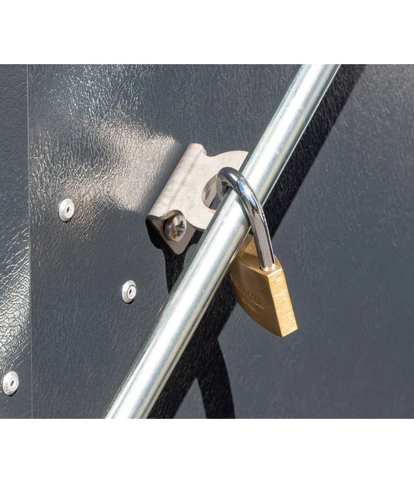 Neben ihrer Funktionalität überzeugt die Fahrradbox ebenfalls dadurch, dass sie pflegeleicht und langlebig ist. So ist die Box nicht nur witterungsbeständig zu jeder Jahreszeit, sondern hält ebenfalls Feuer stand. Das wasserdichte, UV-beständige Material ist zudem leicht abwaschbar, sodass Sie sich lange über den Anblick der Trimetals Fahrradbox Sesame erfreuen können. Dank der Außenbefestigungen aus hochwertigem Edelstahl kann eine hohe Stabilität sowie ein einfacher Aufbau sichergestellt werden. Dieser gelingt dank der vorgefertigten Teile im Handumdrehen gemäß der verständlichen Montageanleitung. Achten Sie für einen ganzjährig sicheren Stand darauf, die Box auf einem befestigten und ebenen Untergrund aufzubauen. Überzeugen Sie sich selbst und bestellen Sie die Trimetals Fahrradbox Sesame gleich heute!