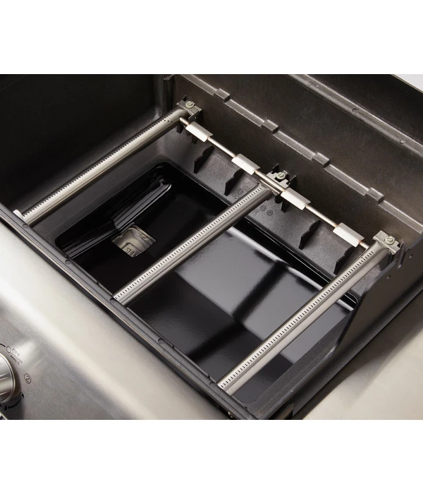 Der Weber Gasgrill Spirit E GBS ist mit einem elektronischen Crossover-Zündsystem ausgestattet, das für beste Hitzeverteilung im Grill sorgt. Unter dem großen GBS-Grillrost befinden sich die hochwertigen Flavorizer Bars, die Ihre Brenner vor herabtropfendem Grillsaft, vor Marinaden und Soßen schützen und Ihr Grillgut damit vor Flammenbildung. Gleichzeitig garantieren sie köstlichste Grillaromen. Natürlich ist der porzellanemaillierte Deckel mit einem integrierten Thermometer ausgestattet und die Seitentische bieten Ihnen viel Arbeits- und Abstellfläche. Nicht zu vergessen der praktische Stauraum für die Gasflasche hinter den Türen und die 4 stabilen Lenkrollen, von denen 2 eine Stoppfunktion besitzen.
